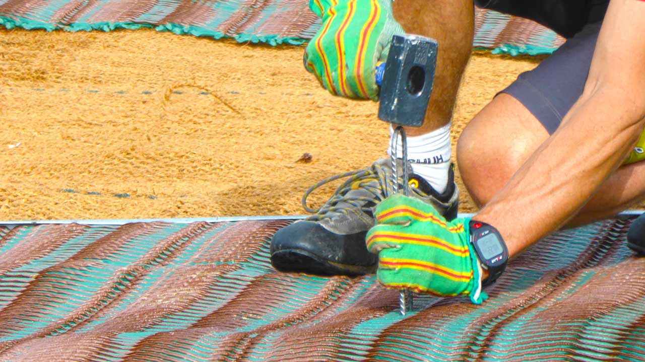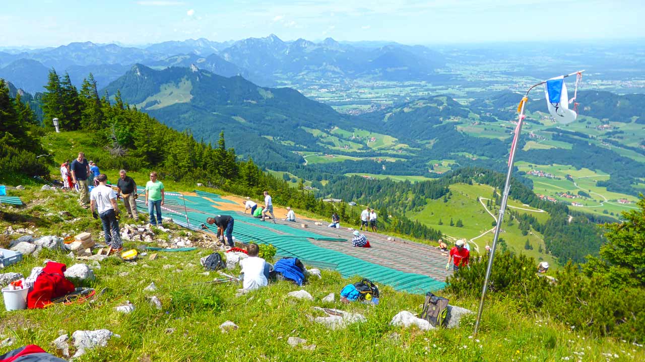 Startplatzsanierung am Samerberg Hochries, als dauerhafter Rasenschutz und Erosionsschutz für den Startplatz für Gleitschirmflieger & Drachenflieger.